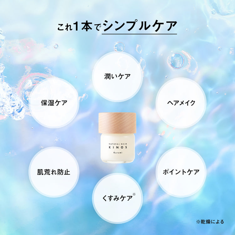 肌の乾燥を防ぎ、保湿します。髪のスタイリングに使った後も手を洗う必要がなく、そのままハンドクリームやリップクリームとしてお使いただけます。